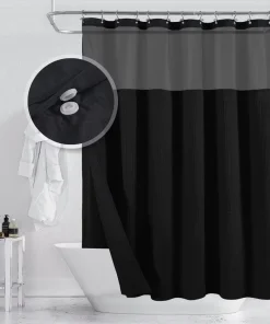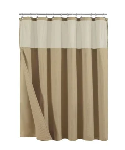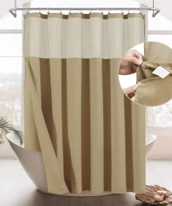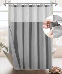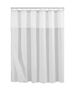 Upgrade your bath style with this luxury Cotton Blend Honeycomb Waffle shower curtain with snap-in liner, easy to transform your daily routine into relax haven. Made from a high-quality blend of 45% cotton and 55% polyester, this shower curtain provides you with endless softness while repelling the water with the detachable liner in same color. Honeycomb waffle texture adds a unique and stylish touch to your bathroom, creating a modern and elegant look. Top sheer window allows light and air to flow into while maintaining the privacy.Â
