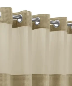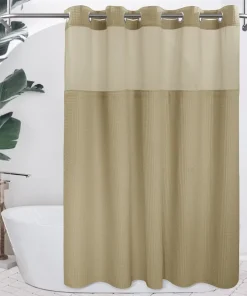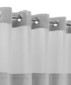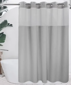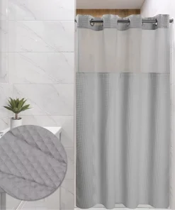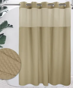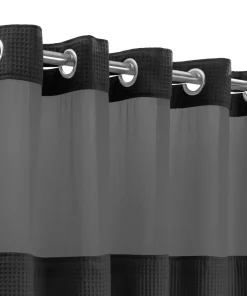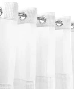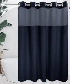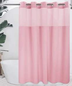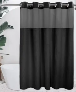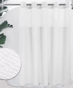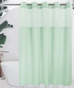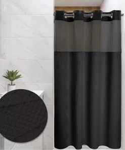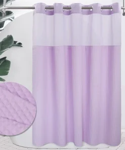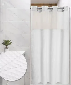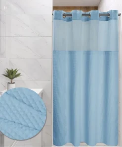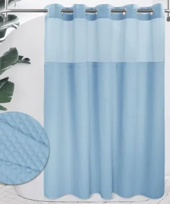 A perfect choice for you to refresh and upgrade your bathroom style with this modern hotel style shower curtain! Crafted from high quality and heavy duty cotton blend fabric, this shower curtain is well draping and wrinkle resistant, also a great blend of softness and breathability, providing hotel spa feel for you during the shower and wiping away your tiredness after one-day work. Combined with classic and timeless honeycomb waffle woven pattern, it shows a more charming look than other solid color shower curtains, effortlessly updating your bath with a luxurious and elegant style. Top sheer window greatly enriches the overall appearance, allows natural air and light flow into while keeping the privacy, works well in enlarging and brightening the bath space, especially suits for the dark or enclosed room. Built-in with split rings, no hooks needed for installment and easy to match various bath styles. To enhance its function, more water resistant snap-in liner is designed to protect the outer curtain, easy on/off for cleaning and replacing. Multiple home trend colors and fresh colors suitable for spring and coming summer, great for a master room, a guest room, dormitory, or hotels and so on. As a must-have in every bathroom, this popular shower curtain with snap-in liner set with both function and aesthetics must become your favorite.
