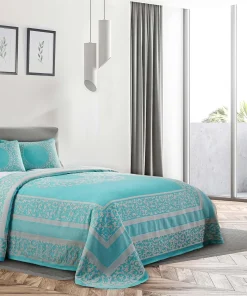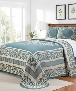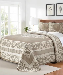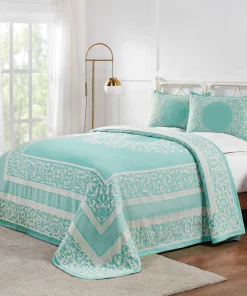- Special Features: Raised jacquard design creates a soft, sculpted texture; Oversized bedspread hangs all the way to the floor eliminating the need for a bed skirt; Included shams give your bed a completed look
