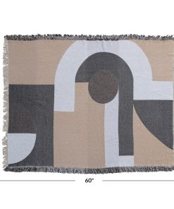 - This contemporary throw blanket features suppled cotton with a bold abstract design and decorative fringe