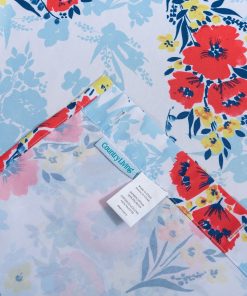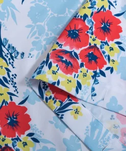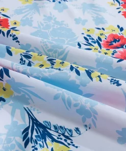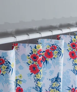 The bright colors and printed floral bouquet pattern of this Floral Bouquet Shower Curtain will add a fresh new look to your bathroom. Cheerful red and yellow flowers pop against the soft blue backdrop. Printed on polyester microfiber for vibrant color and easy, low-maintenance care. Coordinating bedding set also available (sold separately).
