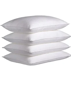 Make your bed a cozier place to relax with these dobby weave pillows. Available in a set of four, these pillows feature 300-thread-count, 100-percent cotton covers that feel soft against your skin. The polyester down-alternative fill provides cushioned yet firm support for your head and neck to enhance your comfort throughout the night.