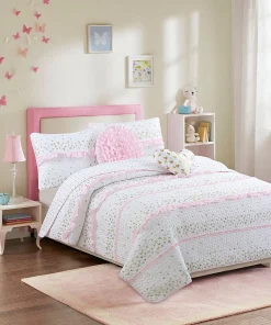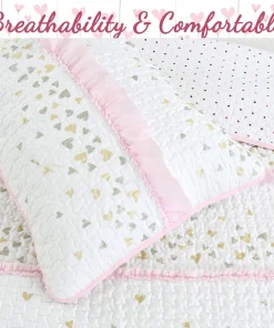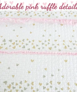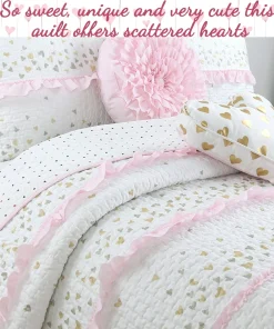 Cozy Line Sweet Heart Polka Dot Pink Ruffle Cotton Quilt Bedding Set