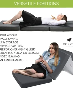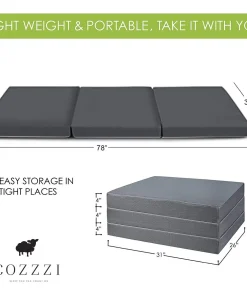 Looking for a comfortable and convenient sleeping solution? Our Cozzzi Folding Mattress is a versatile and comfortable option that’s perfect for unexpected guests, camping, or impromptu sleepovers. Made from high-density foam, it conforms to your body for a therapeutic and restful night’s sleep. When not in use, it folds into a couch position for comfortable lounging or gaming. Lightweight and easy to transport, this mattress is a great addition to any family or game room.