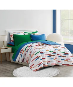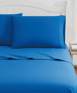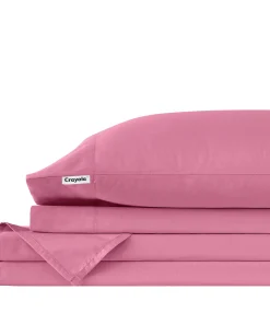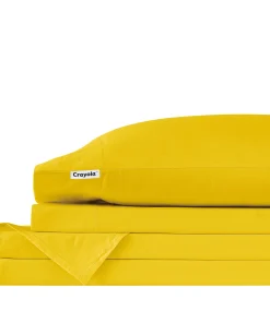 Incorporate imagination and style into your child’s bedroom with this Sheet Set Collection by Crayola. The solid fabric is accented by a vibrant blue color that encourages self-expression and creativity. The soft cotton material is durable and the fabric construction allows for year-round use. Add to your colorful bedding ensemble with comforter and quilt sets by Crayola.