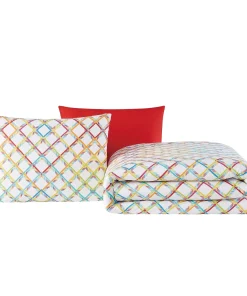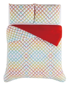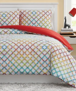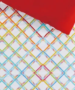 Dress up your kid’s room with this Happy Plaid Comforter Set by Crayola. The plaid pattern is accented by bright, vibrant colors that encourage self-expression and creativity. This comforter reverses to a vibrant red that contrasts the bold face pattern. This soft cotton material is durable and the luxurious polyester fill is the perfect fill weight for all seasons. Add to your colorful bedding ensemble with sheet and quilt sets by Crayola.