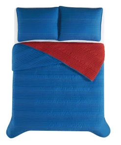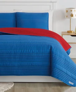 Incorporate imagination and style into your child’s bedroom with this Pick Stitch Quilt Set by Crayola. The solid blue background is accented by bright, vibrant colors and a textured quilted design that encourages self-expression and creativity. This quilt has a fun rainbow stripe pattern and comes with coordinating sham(s). This soft cotton material is durable and the fabric construction allows for year-round use. Add to your colorful bedding ensemble with comforter and sheet sets by Crayola.