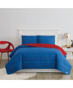 Incorporate imagination and style into your child’s bedroom with this Pick Stitch Quilt Set by Crayola. The solid blue background is accented by bright, vibrant colors and a textured quilted design that encourages self-expression and creativity. This quilt has a fun rainbow stripe pattern and comes with coordinating sham(s). This soft cotton material is durable and the fabric construction allows for year-round use. Add to your colorful bedding ensemble with comforter and sheet sets by Crayola.