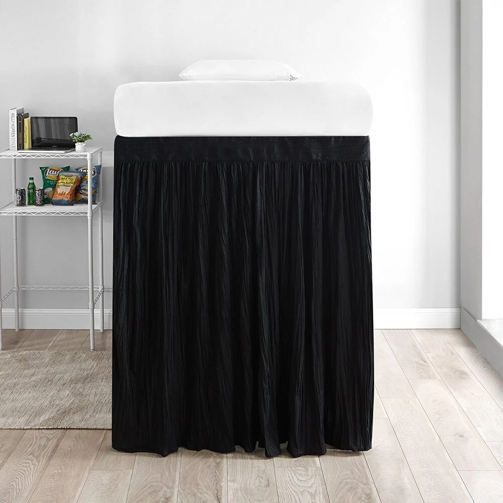Crinkle Extended Bed Skirt Twin XL (3 Panel Set) – Black
