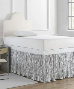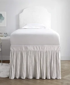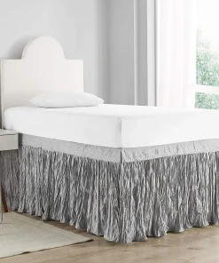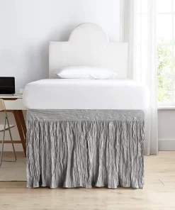 Hide bed risers and storage bins from sight with the 30-inch drop of this Twin XL 3-Panel bed skirt. Crinkling in the fabric gives this bed skirt a unique, contemporary look for modern bedroom decors. Microfiber material ensures lasting durability and easy cleaning via washing machine.