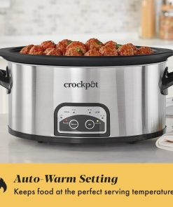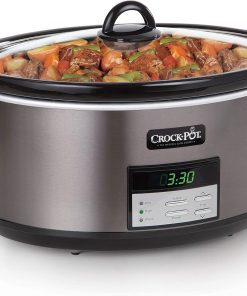 Crock-Pot Large 8-Quart Programmable Slow Cooker with Auto Warm Setting, Black Stainless Steel (Pack of 1)