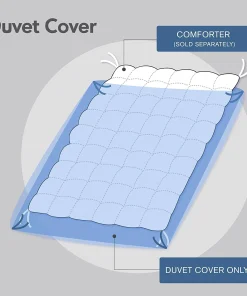 - The duvet has resin logo buttons attached for closure and ties at the interior 4 corners
