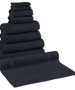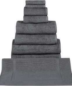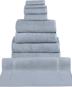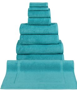 - 9 Piece Set includes: 2 washcloths, 2 hand towels, 2 bath towels, 2 bath sheets, 1 Bathmat