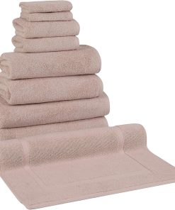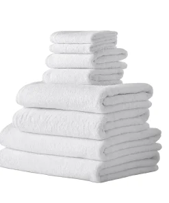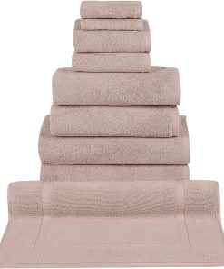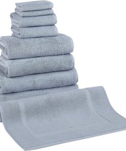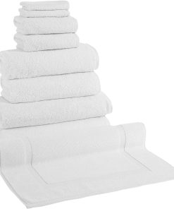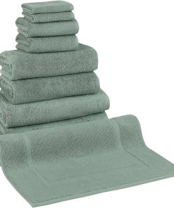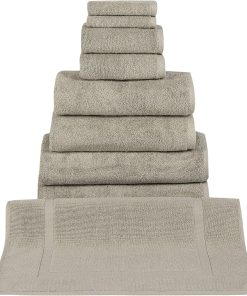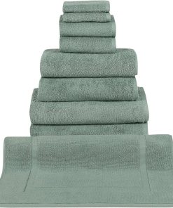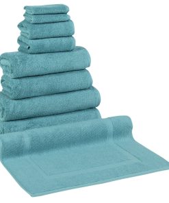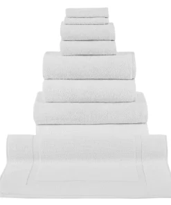 - 8 Piece Set includes: 2 washcloths, 2 hand towels, 2 bath towels, 2 bath sheets
