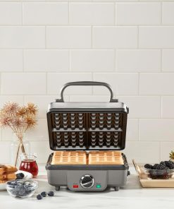 - SUPERIOR FUNCTION: The square classic waffle and pancake maker is professional quality for home use. Bakes 1-large traditional-style belgian waffle and pancakes 1 at a time with four quarters and extra-deep waffle pockets