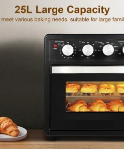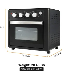 - Generous Family Size: Sized perfectly for families, it boasts a 25L capacity, accommodating 6-8 servings. Whether you’re making 8 slices of toast or a 15-inch pizza, it has the space for your culinary creations. Dimensions: 16.5×15.7×15.7 inches.