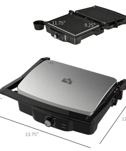 - Panini Press Info: Compact design, no assembly required, dimensions 13.75" L x 12.75" W x 4.75" H.