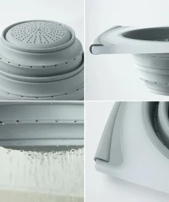 REMOVABLE COLANDER: The colander in this cutting board strainer is easily removable to clean by hand with ease. This strainer is also collapsible for simple storage in your kitchen area.
