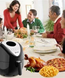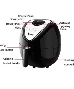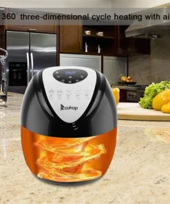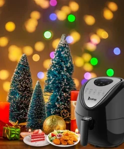 The latest generation of electric Air Fryer allows you to enjoy your favorite fried snacks or foods without the added calories from dunking food in oil.Sleek and modern look with advanced touch screen menu. Take the guesswork out of cooking with the built-in touch screen menu featuring 7 cooking presets: French fries, Natural potato, Chicken nuggets, Chicken thighs, Shrimp, Fish, Cake . Equipped with a wide temperature range from 140°F to 392°F in 9 degree increments and a cooking timer up to 30 minutes.