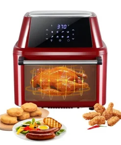 All-in-One Air Fryer, Oven, Rotisserie, and Dehydrator With the Large Air Fryer you are on your way to healthy eating without sacrificing on taste or flavor. Cook, fry, grill and bake without the need for butter, oil or other unhealthy fats. With Rotisserie Chicken Fork, it could cook 3kgs( 6pounds ) Chicken with crisp outside and juice inside. Each Deluxe Air Fryer Oven comes with a fry pan (drip tray), three fry net, chicken fork , rotating basket , skewer rack , fetch rack. Double layer window with inside glass and outside transperant PC. Power Lighting inside, give you a good vision and cool touch.