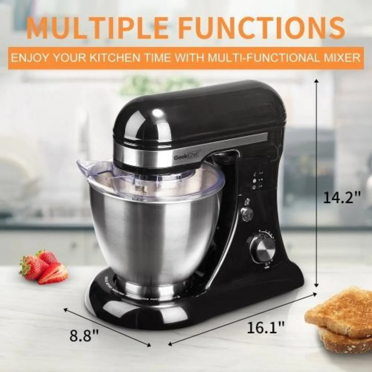 MULTIPLE ATTACHMENT SET: Geek Chef stand mixer comes with four accessories: whisk, beater, dough hook and pouring shield.The pouring shield with pour spout helps add ingredients without making a mess.