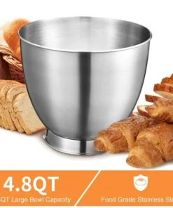 4.7Qt LARGE CAPACITY BOWL: 4.7QT Stainless steel bowl can meet all your kitchen needs. The Stand Mixer is easy to use for making cakes, cookies, pastry,breads, muffins and more. The bowl is dishwasher safe.