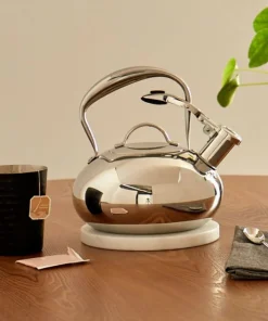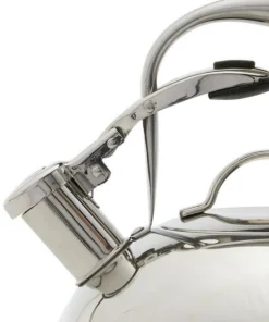 The Modern Industrial Stainless Steel 2-qt. Mirrored Tea Kettle is durable stainless steel and provides not only long-lasting use, but also a polished finish, which creates a sleek modern look. Handwashing is recommended with a non-abrasive plastic pad or bristle brush and a mild detergent. Harsh cleaners, chlorine bleach, steel wool, and metal scouring pads are not recommended.