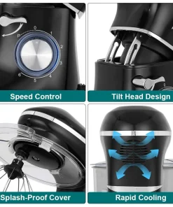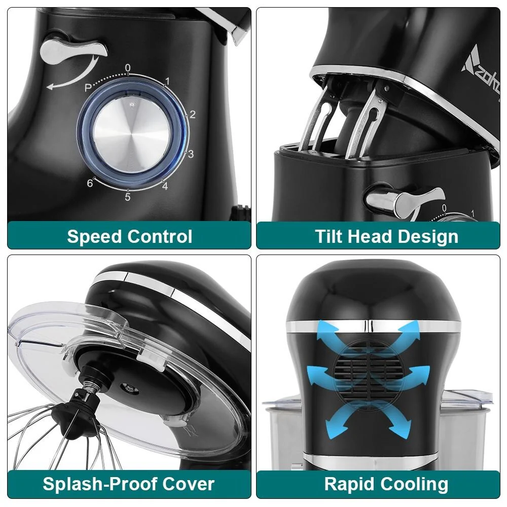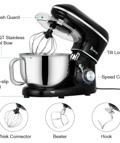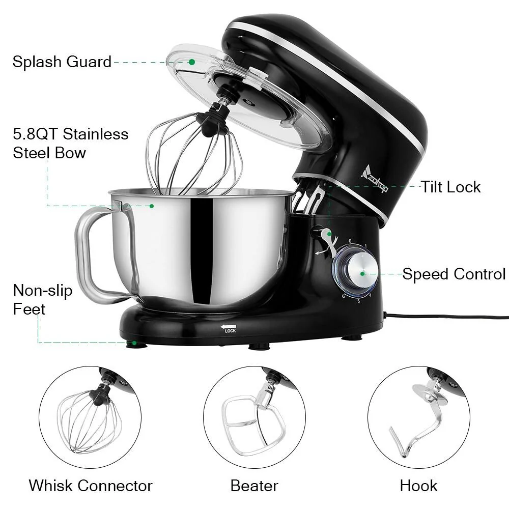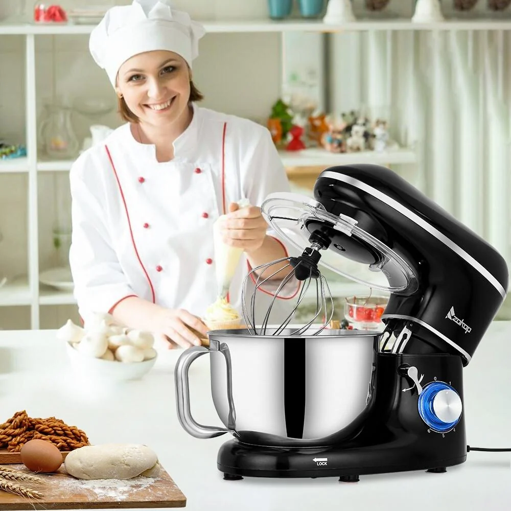 This high quality stand mixer is worth your choice. The mixer has 6 speed settings, allowing you to set the right speed for kneading dough or whipping cream. 660W high performance motor helps to save your time and energy. Non-slip feet keep the mixer still in using, and the splatter shield guards against messy drips, drops, and spills. This stand mixer is pro designed for your kitchen need. It will be one of your excellent kitchen appliance and gift choice.