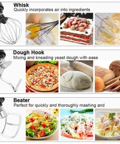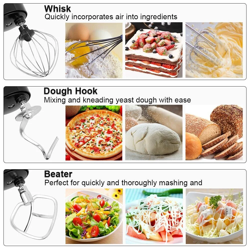 2. Each stand mixer comes with a dough hook, flat beater, whisk
