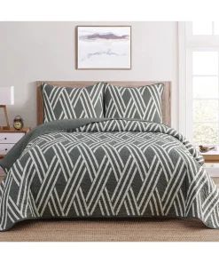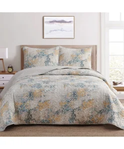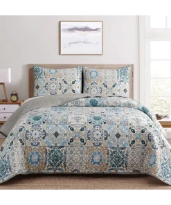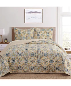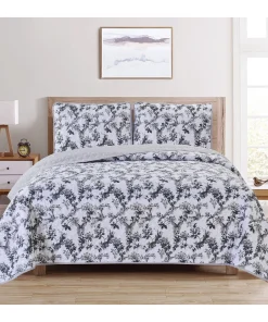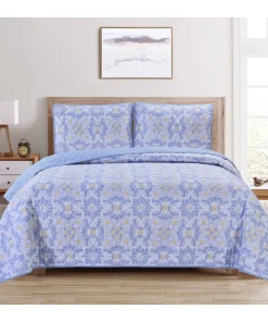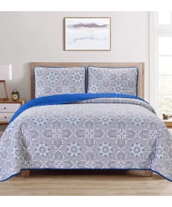 Introducing the Dan River Reversible Printed Quilt Set – a three-piece blend of comfort, style, and practicality for your bedroom retreat. Crafted from durable 100% microfiber, this set offers a luxurious feel and lasting quality. With its unique reversible design, effortlessly switch between patterns to refresh your space. Embrace the plush comfort of microfiber and transform your bedroom into a haven of relaxation and elegance. The Dan River Quilt Set embodies timeless charm and easy maintenance, making it the perfect choice for a refined sanctuary.Premium Microfiber Fabric: Experience the unmatched softness and comfort of 100% microfiber.Reversible Design: The Dan River Quilt Set boasts a reversible feature, allowing you to effortlessly switch between two distinct patterns.Easy Care: The microfiber fabric is resistant to wrinkles and stains, making it a breeze to keep your bedding looking fresh and inviting.Machine washable, this quilt set simplifies the upkeep of your bedroom essentials.Hypoallergenic.Light weighty and warm.Subtle trellis-patterned pinsonic stitching.Full/Queen2 Shams – 20" x 26" 1 Quilt – 86" x 86"King2 Shams – 20" x 36"1 Quilt – 102" x 86"