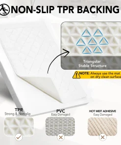 - TPR non-slip backing: Keeps rugs securely in place, making them ideal for seniors, kids, or high-traffic areas.