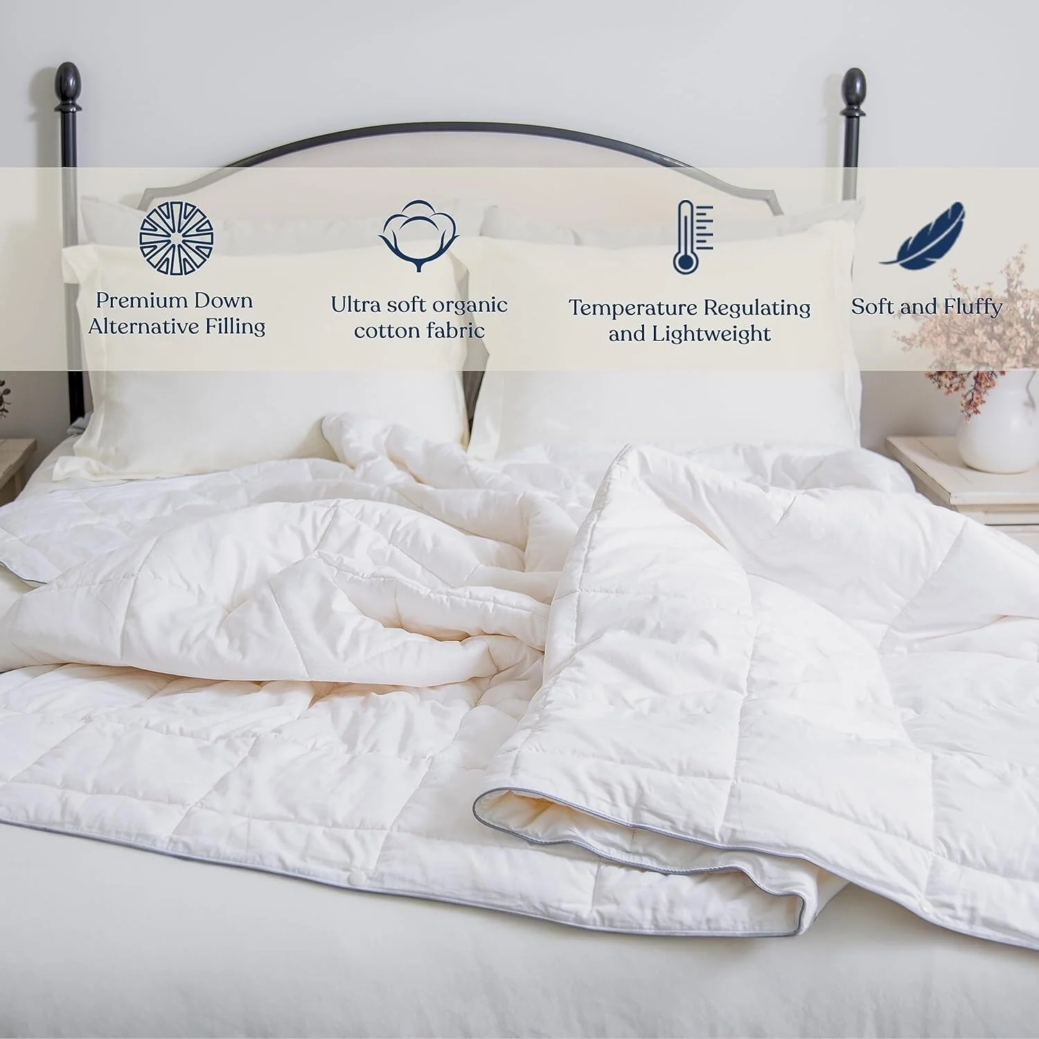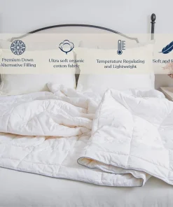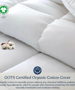 TEMPERATURE REGULATING – The cooling sateen cotton comforter is perfect for those suffering from night sweats or who sweat a lot while sleeping. The organic cotton shell is moisture-wicking and breathable and helps the body reach comfortable sleeping temperatures year-round
