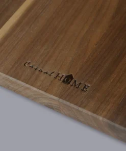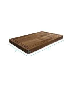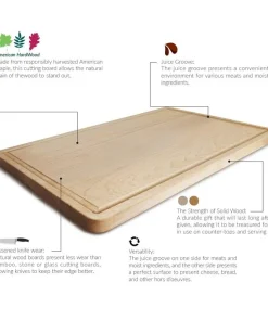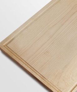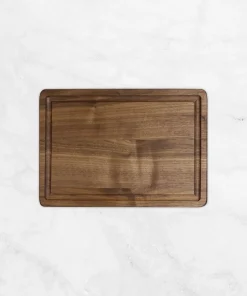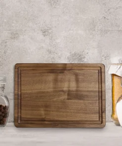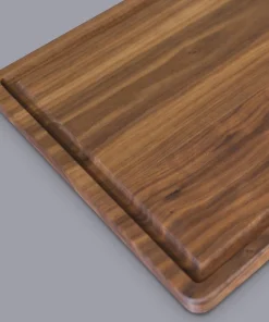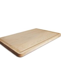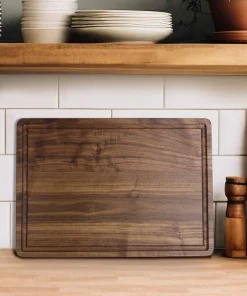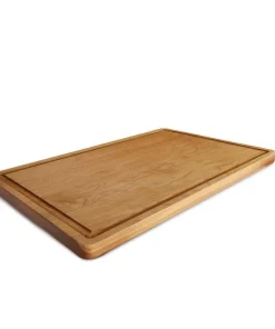 Made from responsibly harvested American Hardwood, this cutting board allows the natural grain of the wood to stand out and will last long to be treasured for years in use on countertops and serving tables. This board can be used on both sides. The juice groove on one side presents a convenient environment for various meats and moist ingredients but flip the board and the flat side presents a perfect surface to present cheese, bread, and other hors d’oeuvres. Natural wood boards allow knives to keep their edge better while withstanding heavy use in any kitchen. Â Â