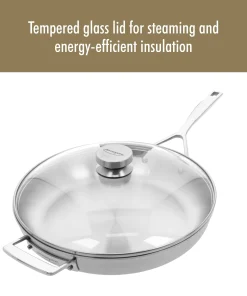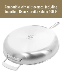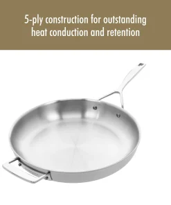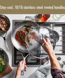 The durable 5-ply construction boasts optimal heat distribution, conduction, and retention. This guarantees even cooking from rim to rim, for perfect pancakes, browned meats, and seared salmon. Don’t worry about cooking at high temperatures – the signature flat base stability prevents warping.