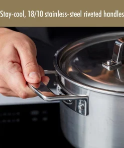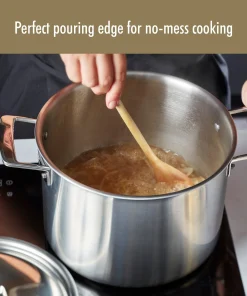 Enjoy chef-friendly features like stay-cool, 18/10 stainless-steel handles. Their secure rivets help you maneuver the pot with confidence. While the perfect pouring edge ensures no-mess cooking and serving.