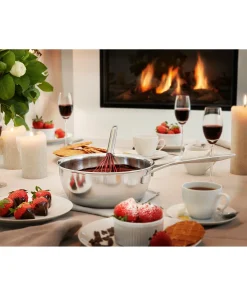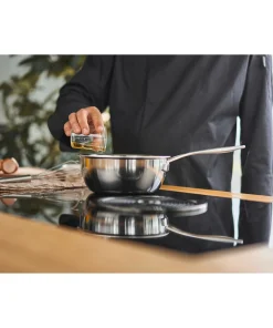 Other chef-friendly features include dripless pouring rims and ergonomic stay-cool handles that are welded so they are ultra-secure. And because there are no rivets for grease to collect around, they’re exceptionally hygienic. The patented Silvinox surface treatment on DEMEYERE cookware maintains a flawless, silvery white finish that’s easy to clean and more resistant to fingerprints, harsh detergents, and strong acidic foods, even after years of use.