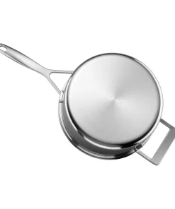 These stainless-steel frypans with a 5-layer construction provide unparalleled frying, perfect browning, and guarantee exceptional heat distribution and retention. The 12.5-inch frypan features a convenient helper handle for easy maneuvering.