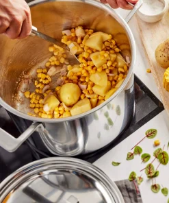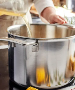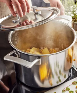 Other chef-friendly features include dripless pouring rims and ergonomic stay-cool handles that are welded so they are ultra-secure. And because there are no rivets for grease to collect around, they’re exceptionally hygienic. The patented Silvinox surface treatment on DEMEYERE cookware maintains a flawless, silvery white finish that’s easy to clean and more resistant to fingerprints, harsh detergents, and strong acidic foods, even after years of use.