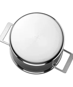 - Stay-cool, shot-blasted 18/10 stainless-steel handles are securely welded and extremely hygienic; oversize loop handles allow for easy maneuvering