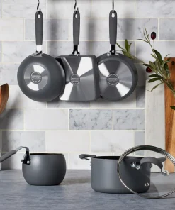 Denmark 5PC Aluminum Non-Stick Complete Mini Cookware Set with Silicone Handles – Cool Gray