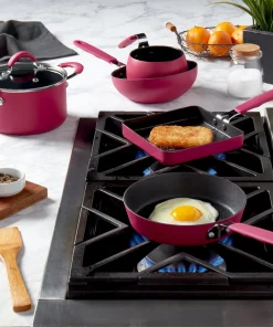 Denmark 5PC Aluminum Non-Stick Complete Mini Cookware Set with Silicone Handles – Fuschia