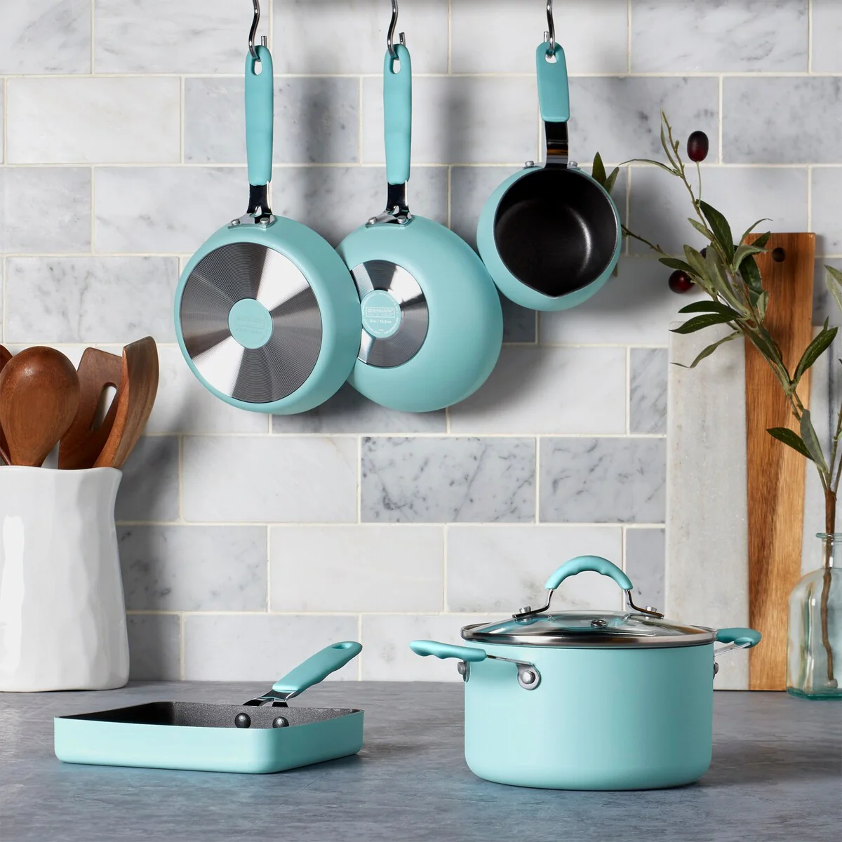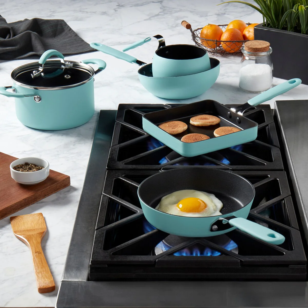 Denmark 5PC Aluminum Non-Stick Complete Mini Cookware Set with Silicone Handles – Light Blue