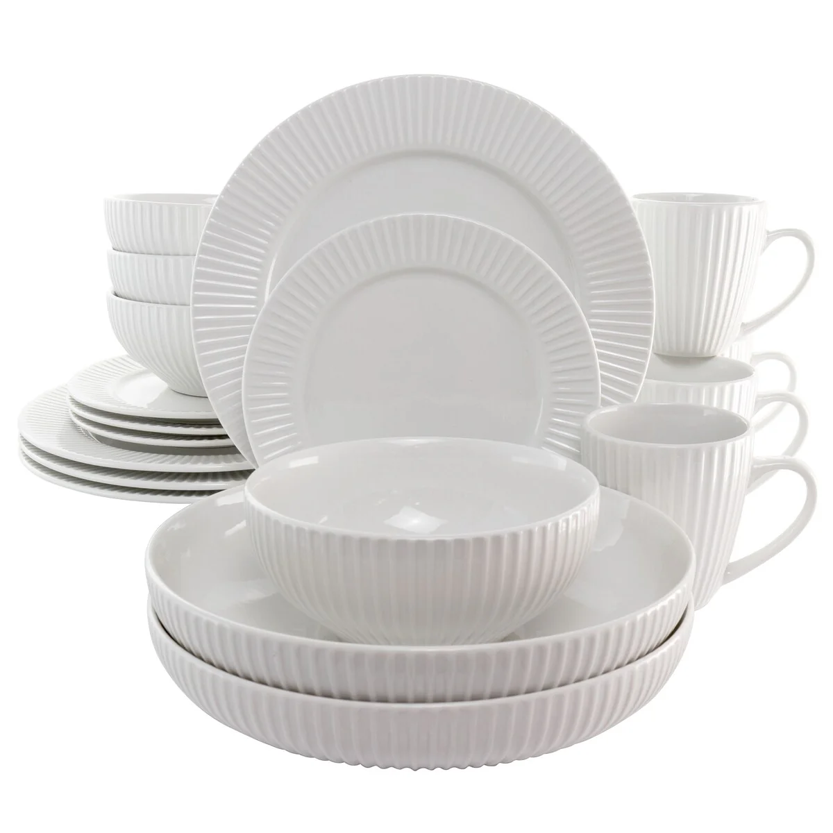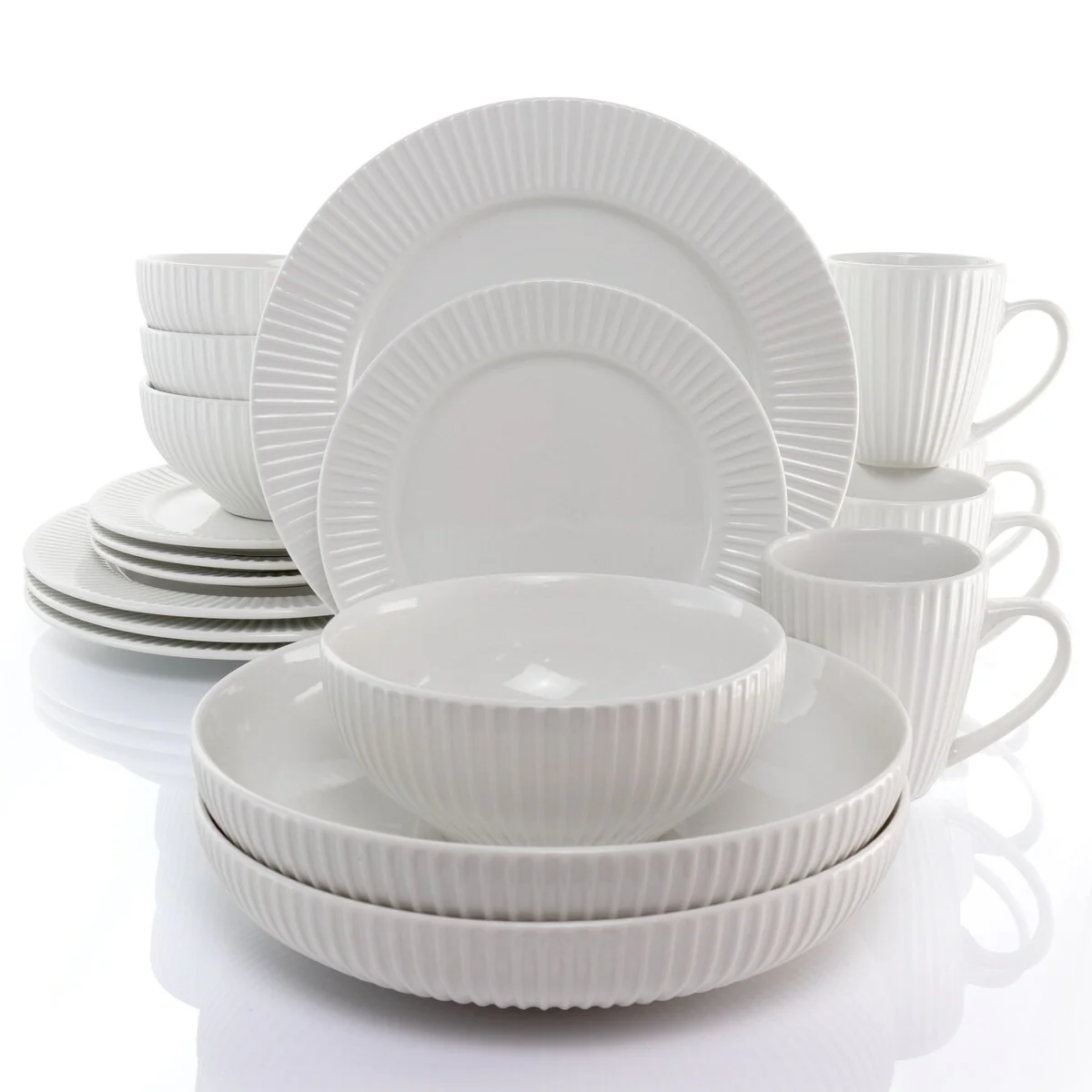 Dinnerware 18 Piece Set with 2 Large Serving Bowls in Porcelain
