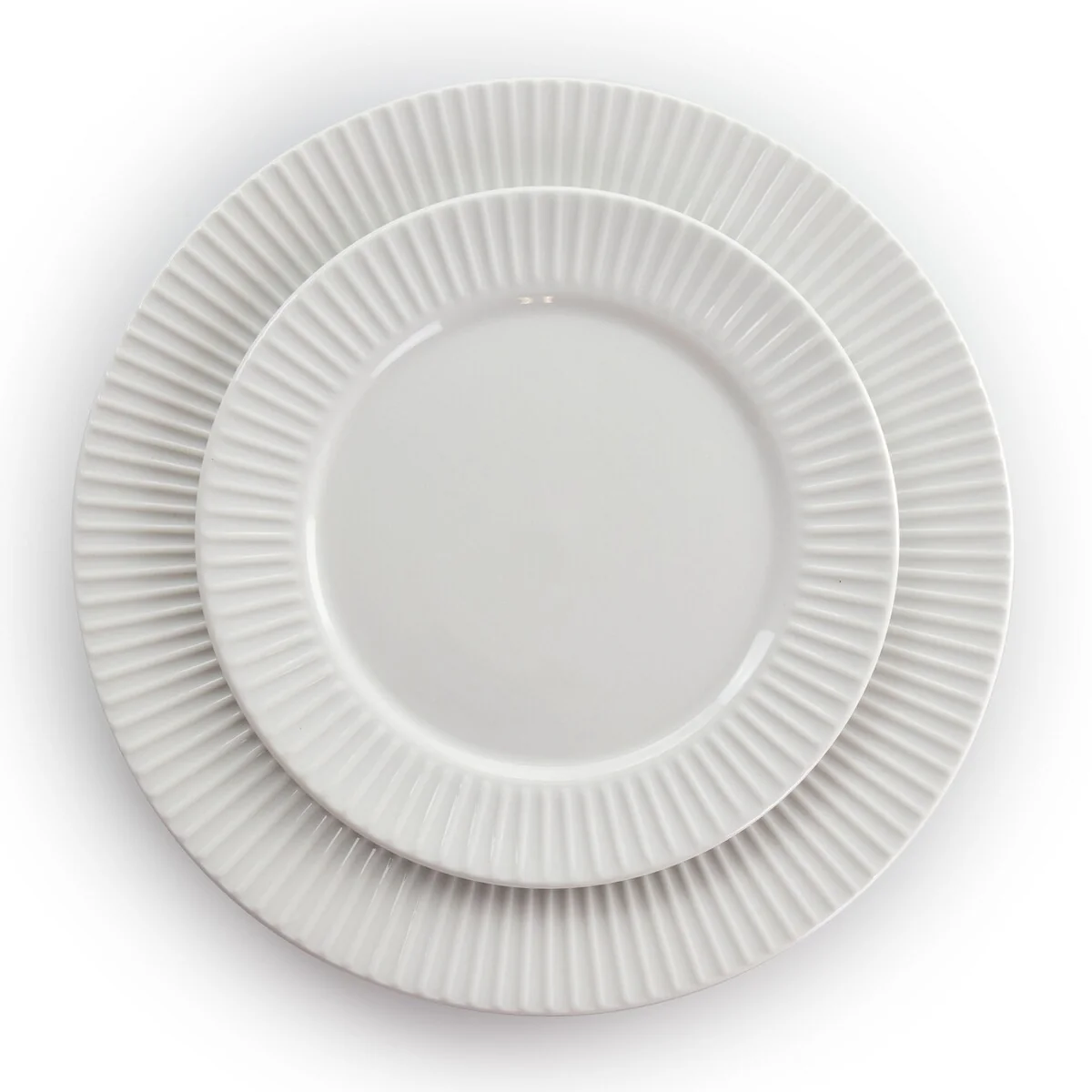 Add a touch of elegance and class with this18 Piece Porcelain Dinnerware Set with 2 Large Serving Bowls in White. This beautiful timeless textured plate set goes great with any setting for every occasion. Allowing for you to display your meal effortlessly, this service set for four includes two large serving bowls ideal for rice, salad and pasta, show off your culinary greatness. Constructed of Porcelain, this durable tableware set is sure to last through your most memorable meals. Dishwasher and microwave safe for easy reheating and easy cleaning.