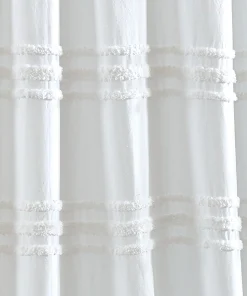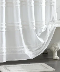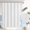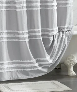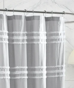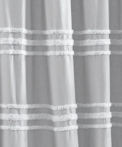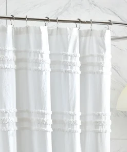 Refresh your personal sanctuary with a modern take on a classic technique presented in the DKNY Chenille Stripe Shower Curtain. A horizontal white chenille stripe offers texture on a soft ground that gives a crisp presentation to this shower curtain. With a standard 72” x 72” size, this shower curtain will be the perfect addition in most bathrooms. Â