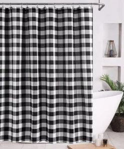 Refresh your personal sanctuary with a modern take on a classic technique presented in the DKNY Chenille Stripe Shower Curtain. A horizontal white chenille stripe offers texture on a soft ground that gives a crisp presentation to this shower curtain. With a standard 72” x 72” size, this shower curtain will be the perfect addition in most bathrooms. Â