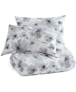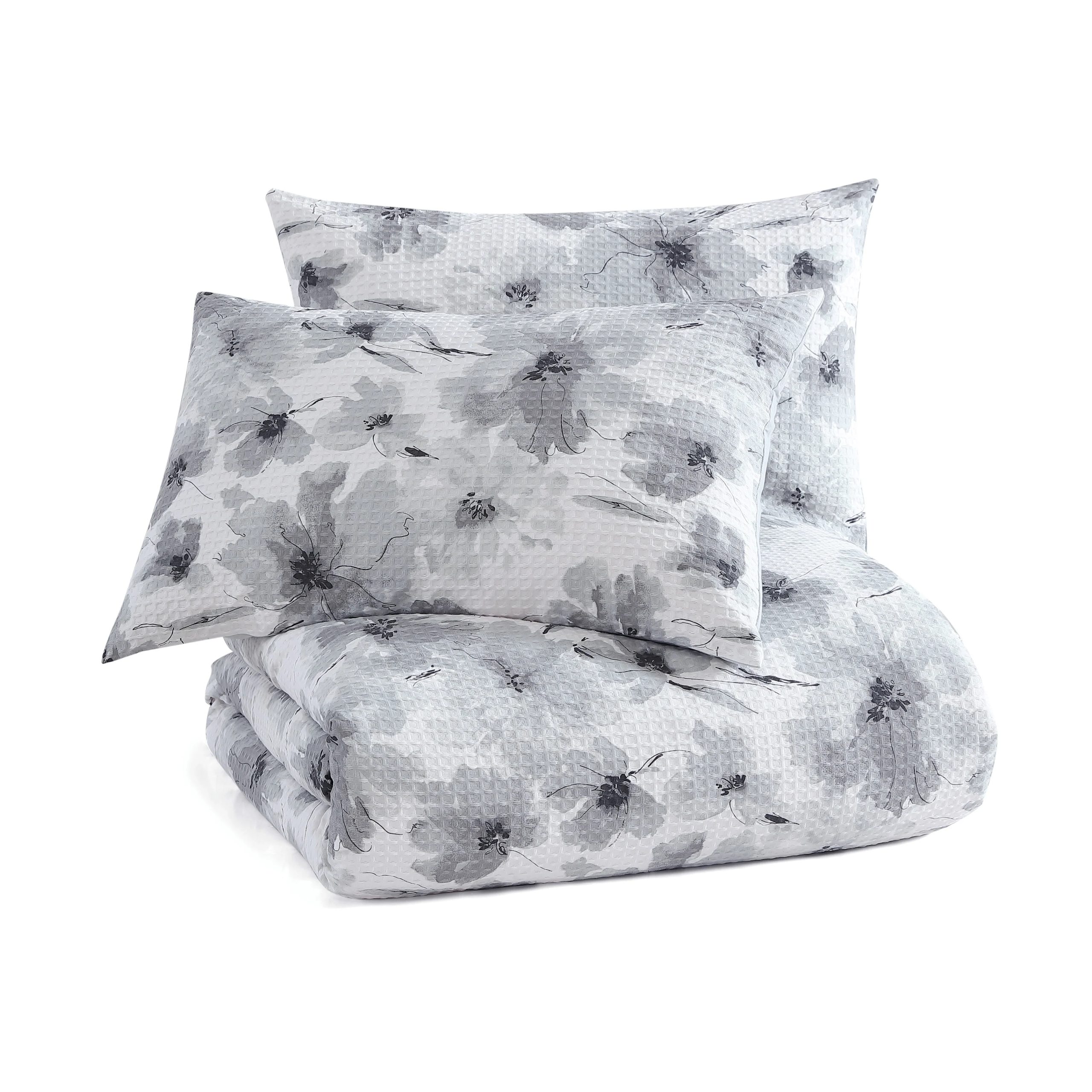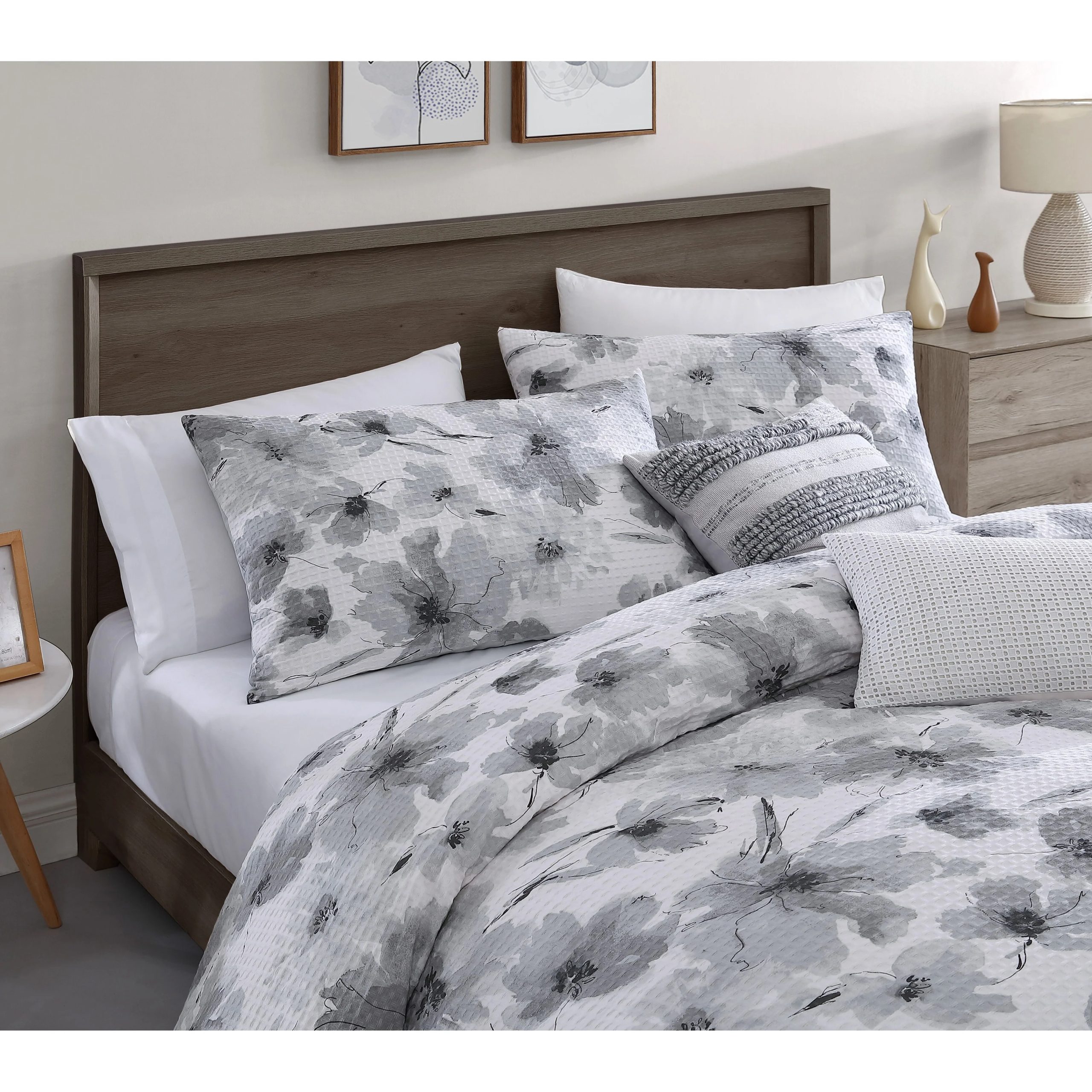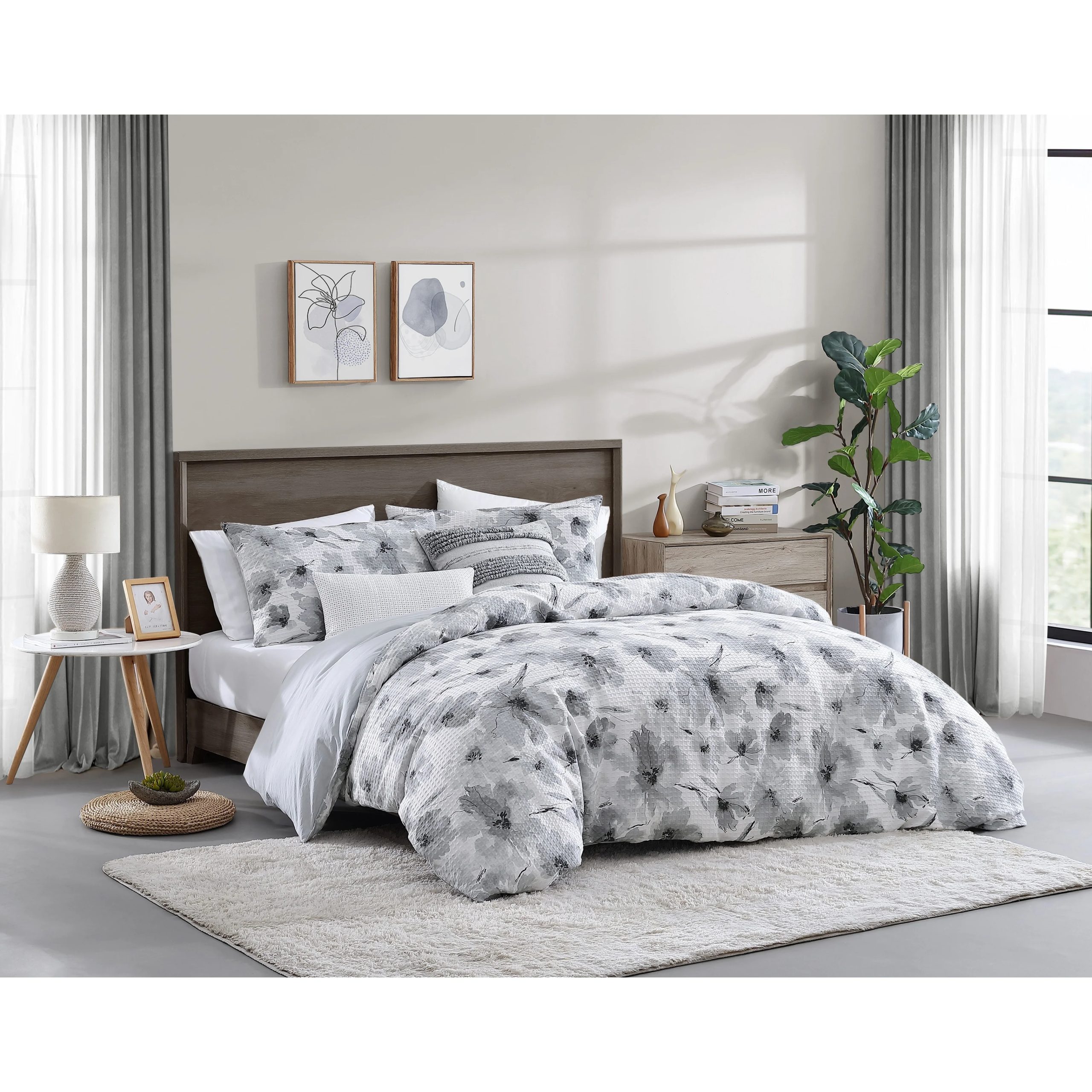The DKNY Modern Bloom duvet set will make a fresh update for any bedroom. Printed florals in a watercolor appearance naturally lend a relaxed setting, and when combined with a cotton waffle texture, your sleep space will be made for dreaming. Â