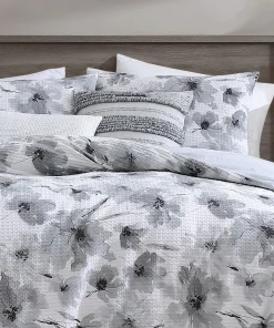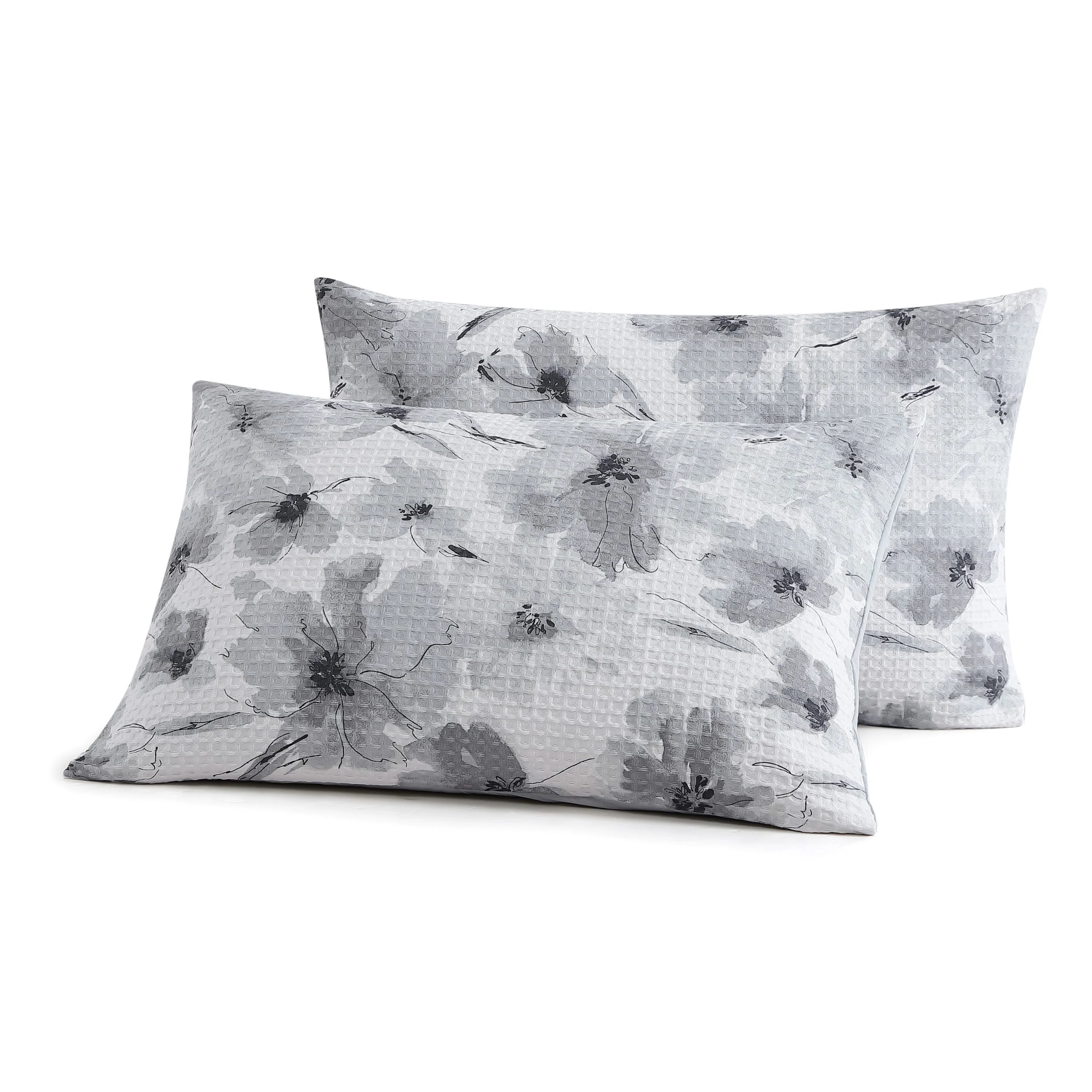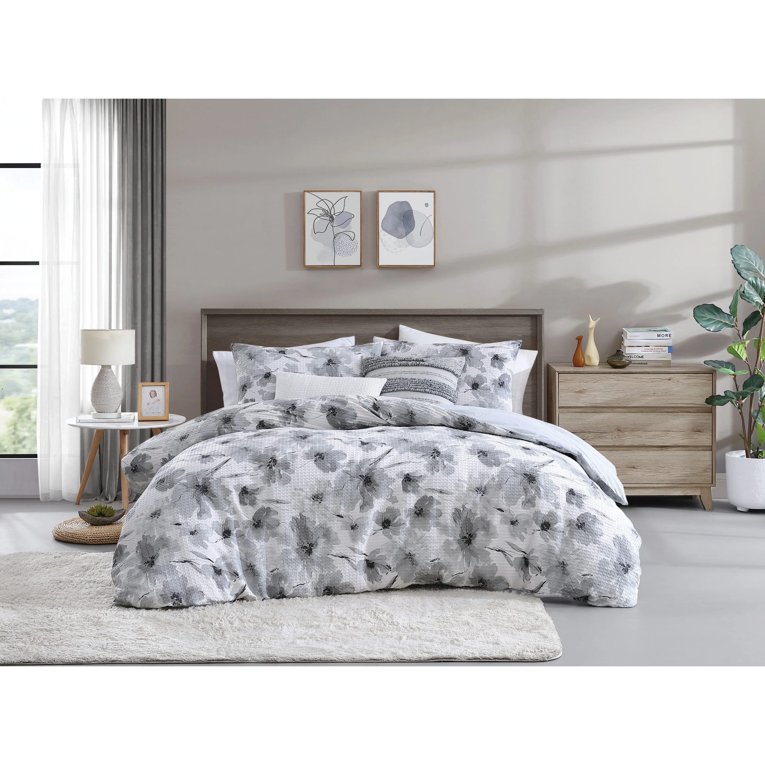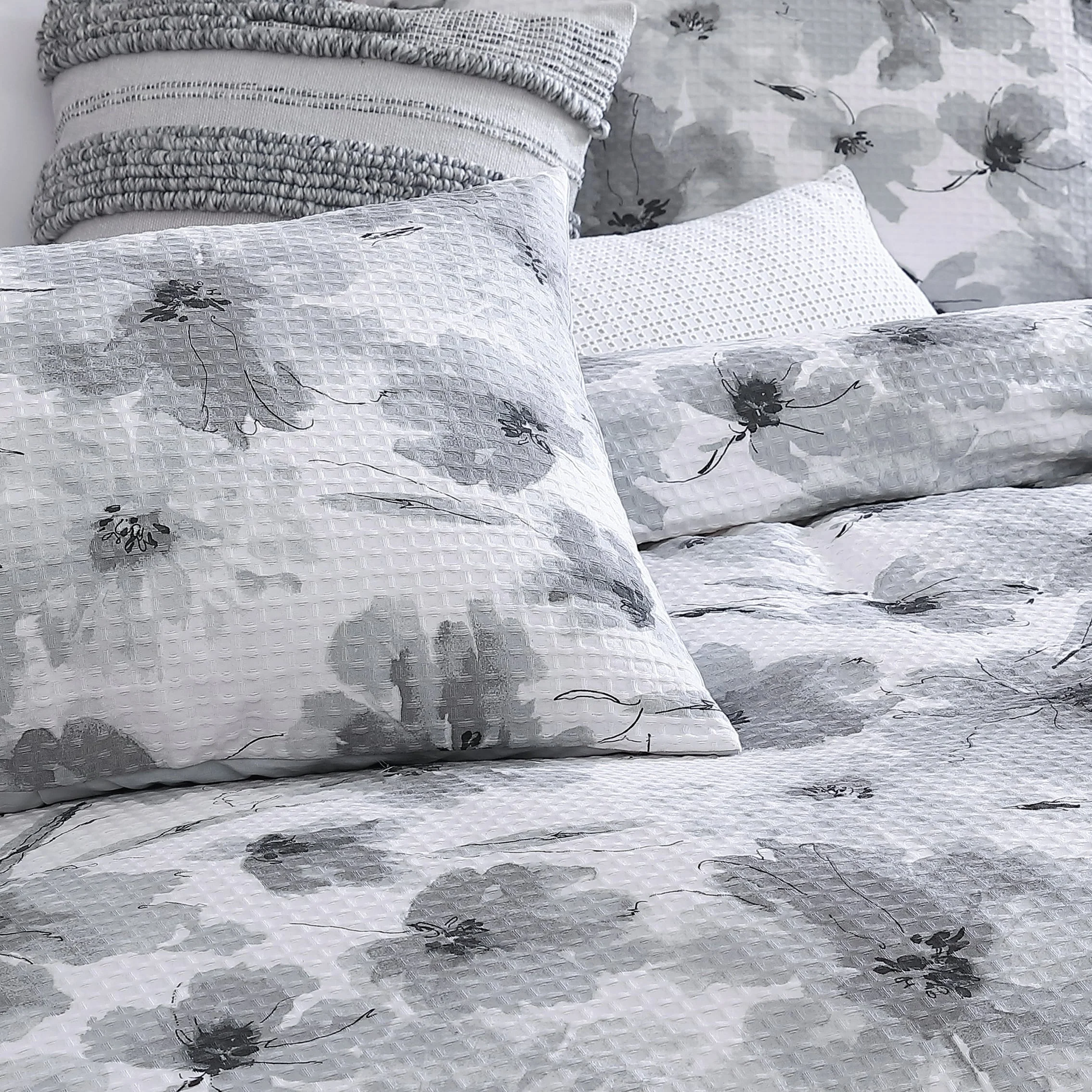 The DKNY Modern Bloom duvet set will make a fresh update for any bedroom. Printed florals in a watercolor appearance naturally lend a relaxed setting, and when combined with a cotton waffle texture, your sleep space will be made for dreaming. Â