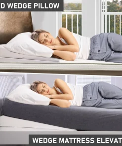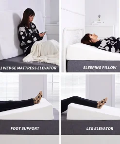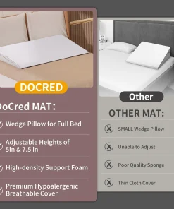 DoCred Memory Foam Wedge Bed Pillow Made from memory foam, the Wedge Sleep Pillow is sturdy enough to hold its shape for a long period of time without deforming. This pillow provides you with the correct lying position, supporting your neck, lower back, legs and knees. The height of the pillow is adjustable so you can adjust it according to your needs. The wedge-shaped sleeping pillow is ergonomically designed to relax your entire body. You can use it to promote healthier posture, help reduce neck pain, increase blood flow, promote breathing, reduce snoring and heartburn during nighttime sleep, and allow you to wake up pain-free in the morning. It rests vertically against the headboard, allowing them to read, watch or relax in bed, keeping the rest of their body comfortable while elevating their upper body. It will be the perfect gift for lovers, friends and parents!