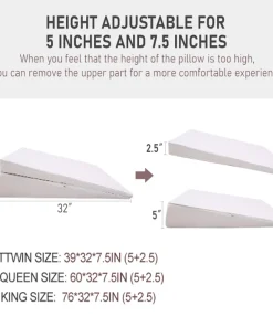 - Wedge pillow three heights adjustable: 7.5“, 5” and 2.5”.